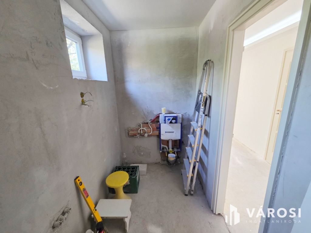 - A földszinten teljes felújítást hajtottak végre: aljzat víz és hőszigetelés, padlófűtés, falak vakolása, vízvezeték, elektromos hálózat, új 3 rétegű műanyag nyílászárók, ikerszomszéd felől hangszigetelés, led világítás. A fürdőszobát (burkolatokat, szaniterket) az új lakó saját ízlése szerint alakíthatja.