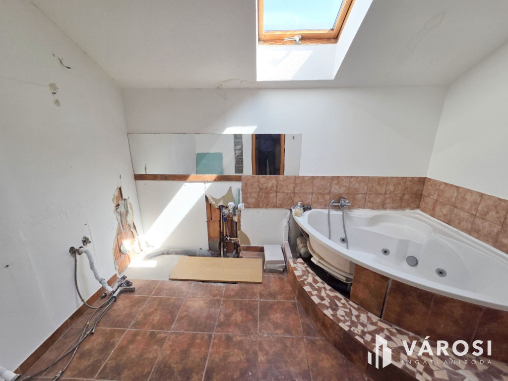 - A tetőtérbe is új nyílászárók kerültek be, de ettől eltekintve állapota még felújításra szorul. A ferdefalaknál a legalacsonyabb plafon magasság 190 cm.