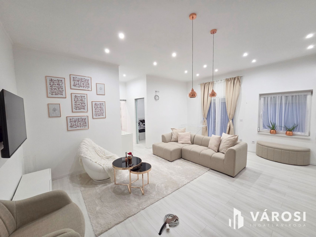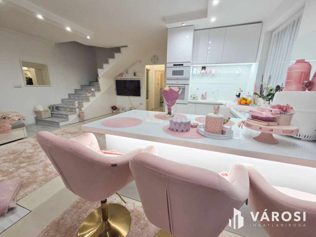 Exkluzív ikerház és a különálló melléképületben kialakított modern lakás teljes bútorzattal, egyben eladó!Két generáció együttélésére tökéletes választás, illetve a melléképület üzleti célra is hasznosítható: iroda, szépségszalon, masszázsszalon, albérlet...stb.