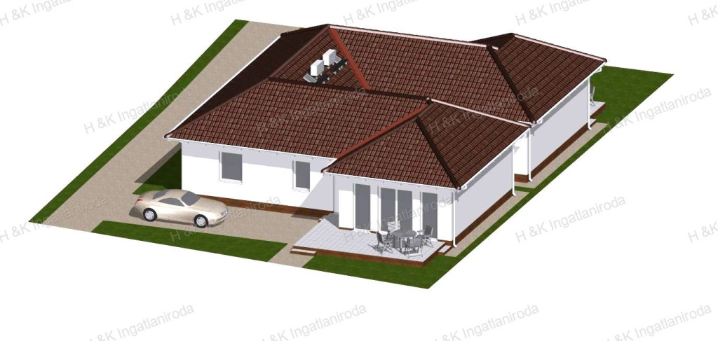 A vételár tartalmazza: napelem- és riasztó előkészítést, kaputelefont, zárt udvari gépkocsi-beálló kialakítását, biztonsági bejárati ajtót.