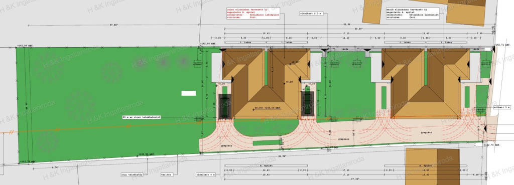 Az ikerház 1-es lakása 324 nm-es telekrésszel rendelkezik, az ára: 92 M Ft