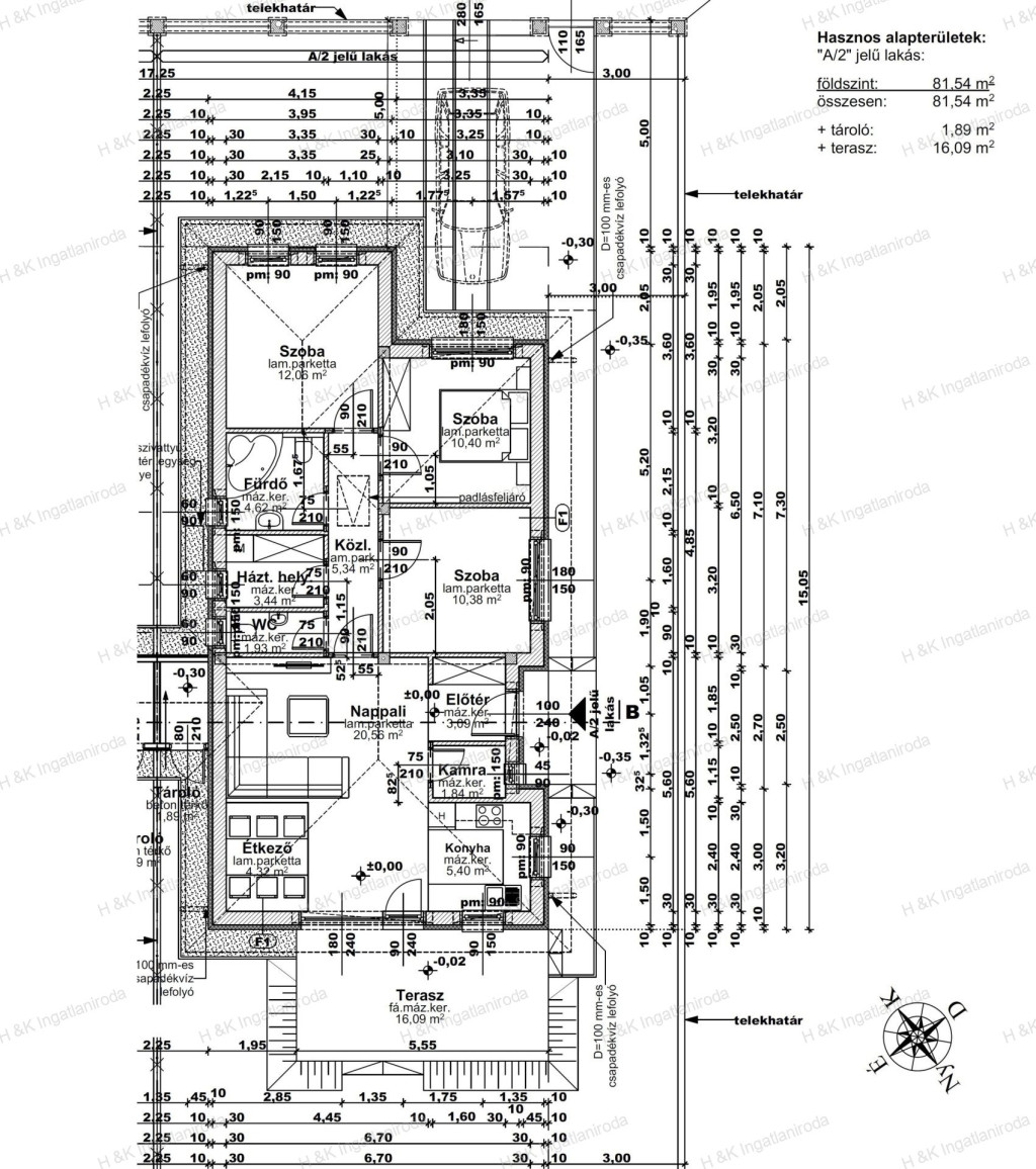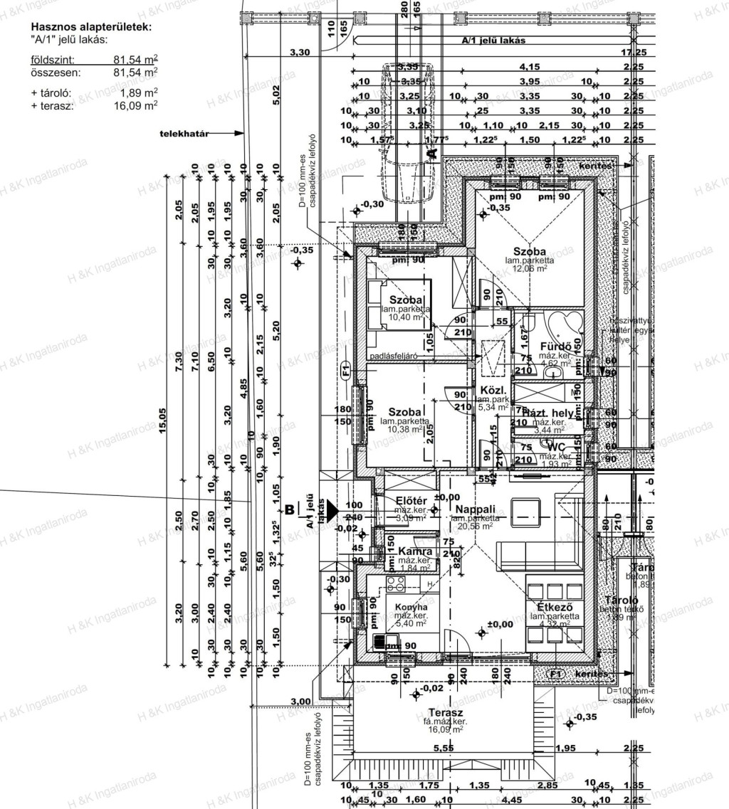 Parkolás: zárt udvari, térkövezett beállón kerül kialakításra.
