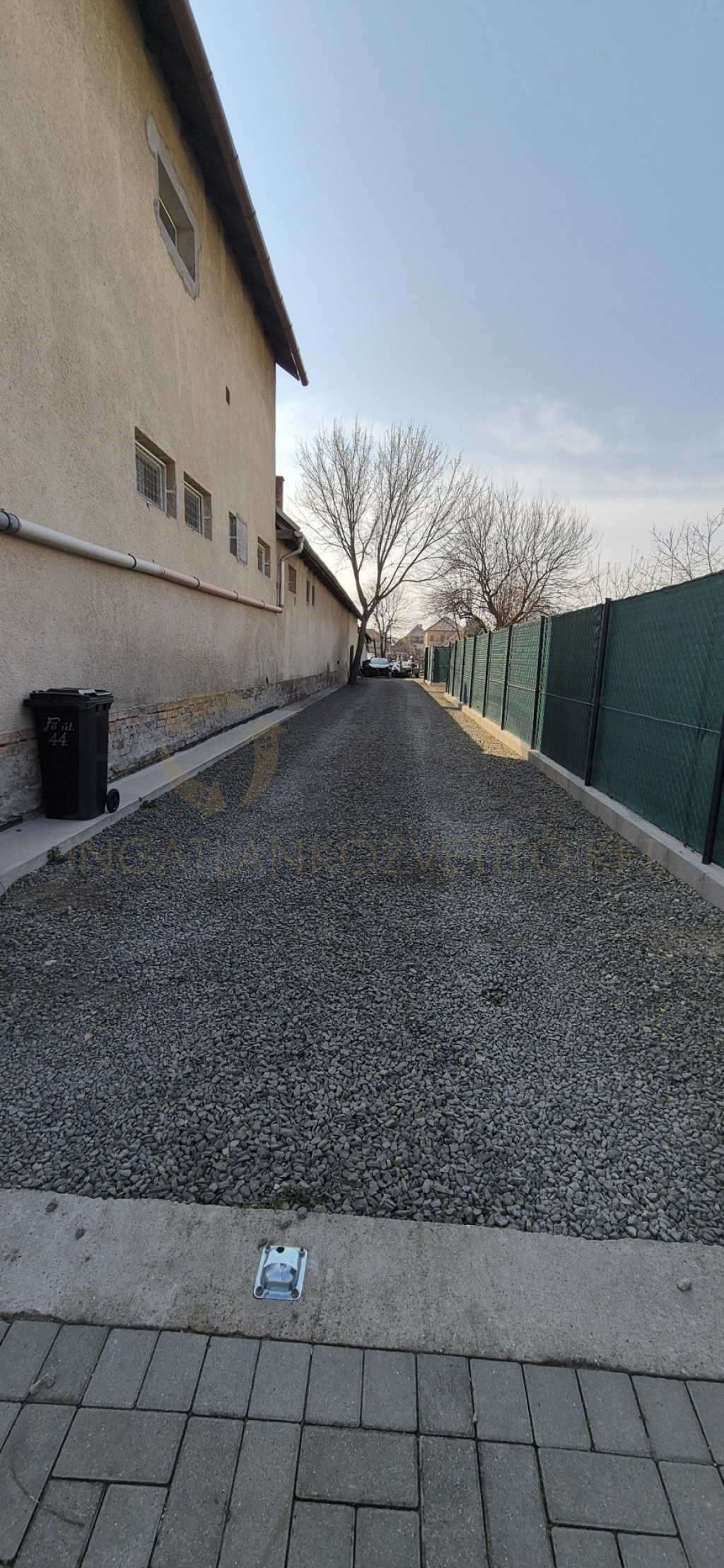A teljes telek mérete 2257 m². A telek végében található egy további épület, amely más tulajdonában van, nem képezi az eladás tárgyát.
