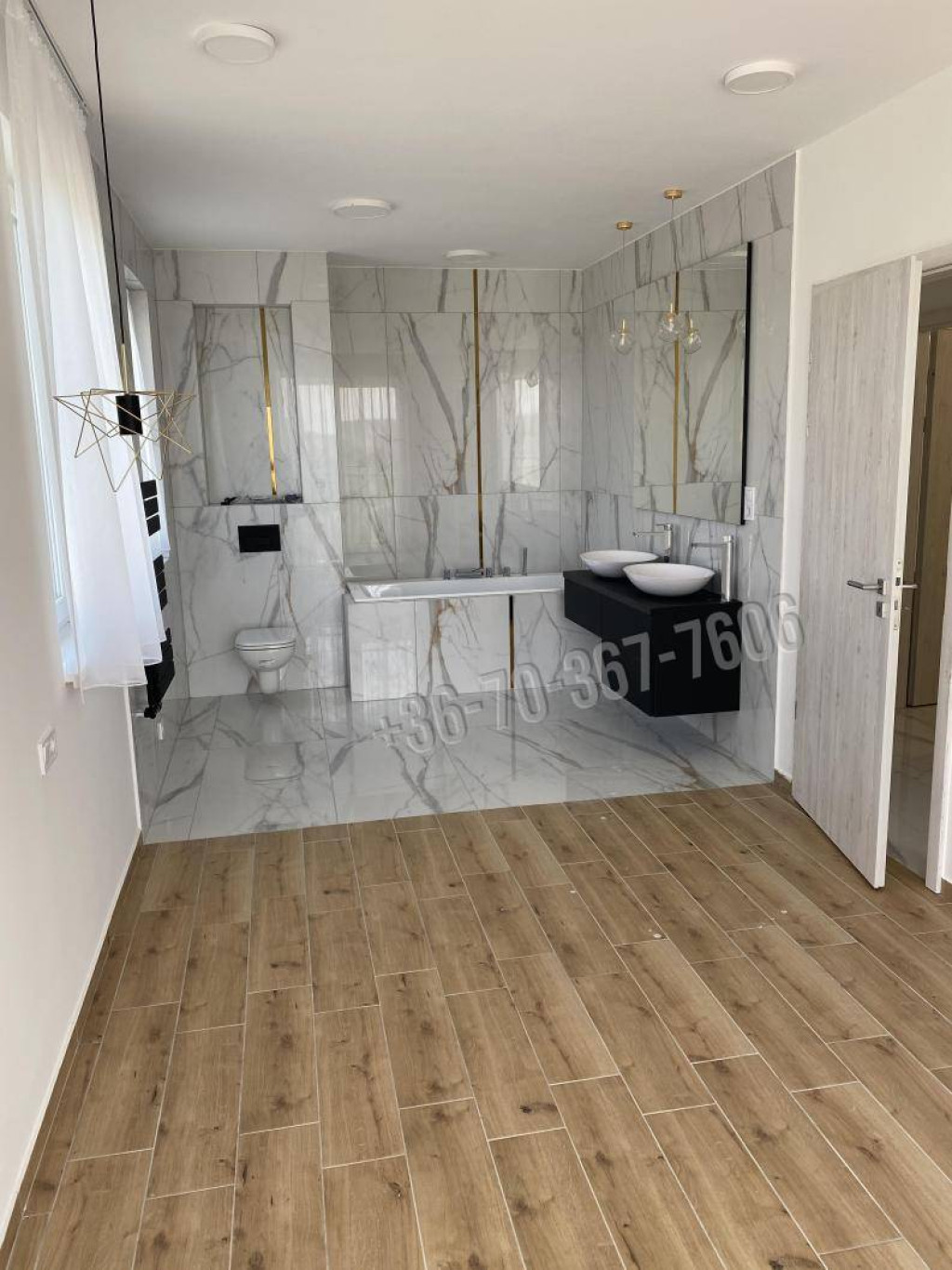 Az ingatlan 2023-as átadással épült, nívós,kellemes hangulatú,világos,jó terekkel kialakított, melyhez saját kertkapcsolat és 2 beállós garázs tartozik. A 430 nm-es telken egy 102 nm alapterületű,nappali+konyha-étkező,gardróbszoba,vendég wc, 2 hálószoba, melyből egyik modern, extra megoldással a fürdőszobával egy térben helyezkedik el. Alagsorában a garázs mellett kazánház,mosókonyha kialakított.