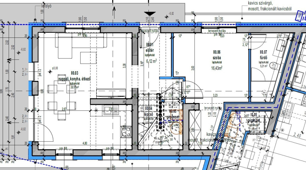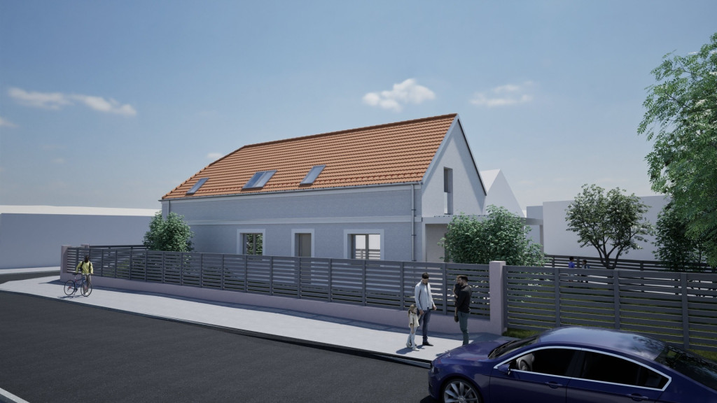 - lakótér 110nm: az épület földszintjén amerikai konyhás nappali-étkező, fürdőszoba és egy hálószoba található. A felső szinten két hálószoba és egy fürdőszoba kerül kialakításra.