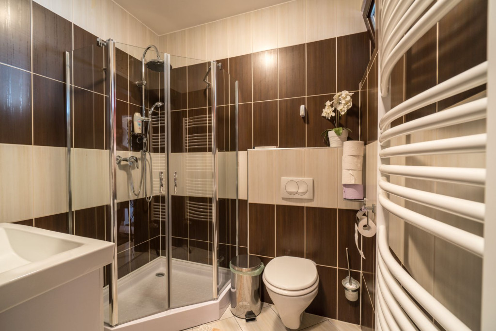 Die Badezimmer sind mit hochwertiger italienischer und spanischer Bedeckung, mit Badewannen und Duschräume „Ravak“, hochwertigen Sanitäranlagen und Hahnbatterien „Kludi“ und „Hansgrohe“ ausgestattet.