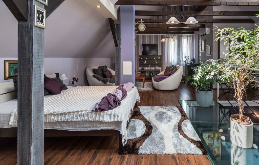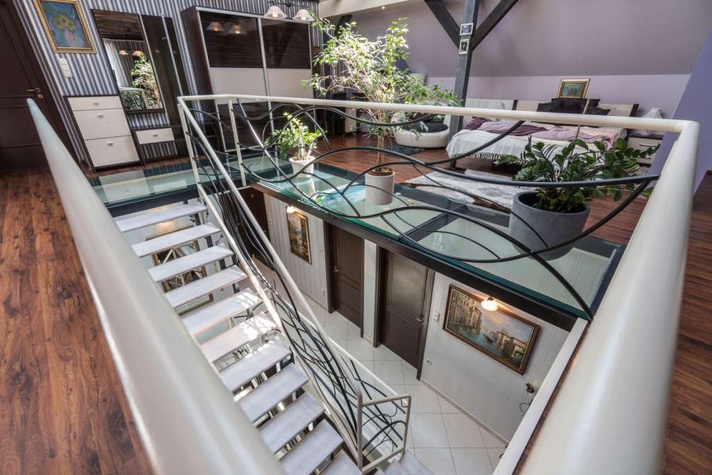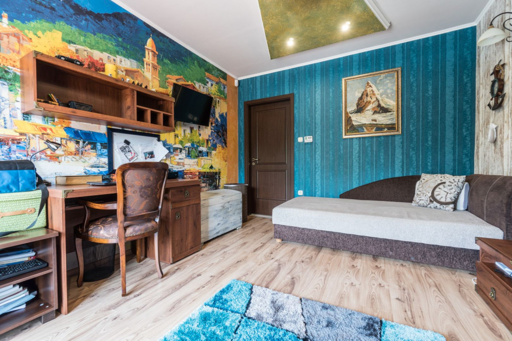 The third floor can be used as a separate apartment: with is huge living room, King-size bed, bathroom, kitchenette, and a 35 sqm loft.
