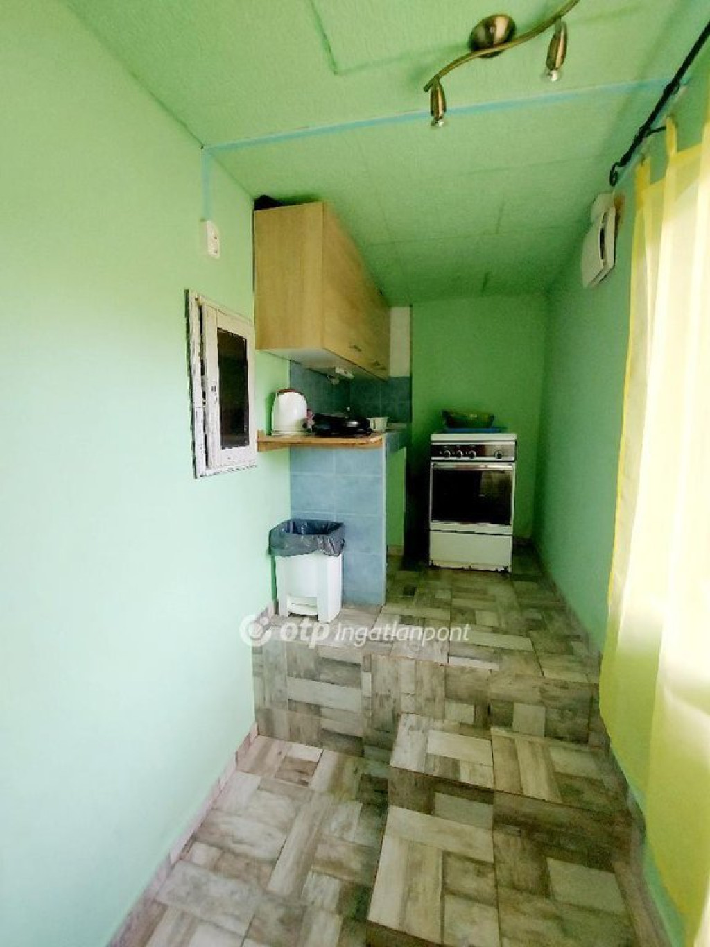A földszinti részen előszoba, konyha, egy szoba és fürdő található.
