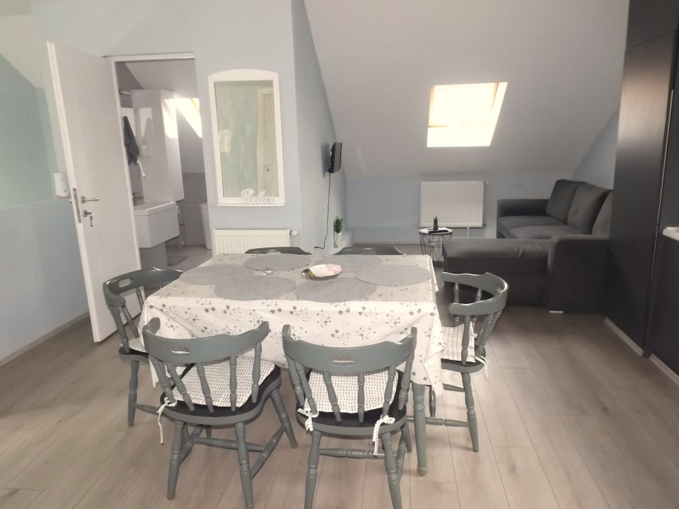Az emeleti apartman vendégfogadásra kiadva, az alsó szintet a tulajdonos birtokolja.
