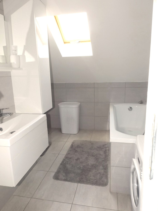 Emeleti részen: amerikai konyha-étkező-nappali, kádas, zuhanyos fürdőszoba egy légtérben a mellékhelyiséggel és 2 külön hálószoba. Az ingatlan teljeskörűen felújított.