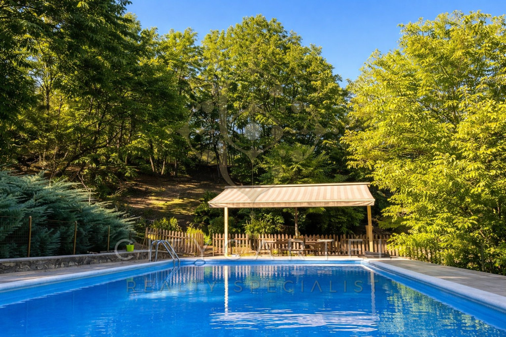 Esztergom külső, keleti részén, erdővel határolt, csendes, kristálytiszta levegőjű völgyben, festői tavak közelében kínálunk megvételre egy 29 198 nm területű telken fekvő, három épületből álló kúriabirtokot, összesen 718 nm lakótérrel, 5 × 10 m-es úszómedencével.