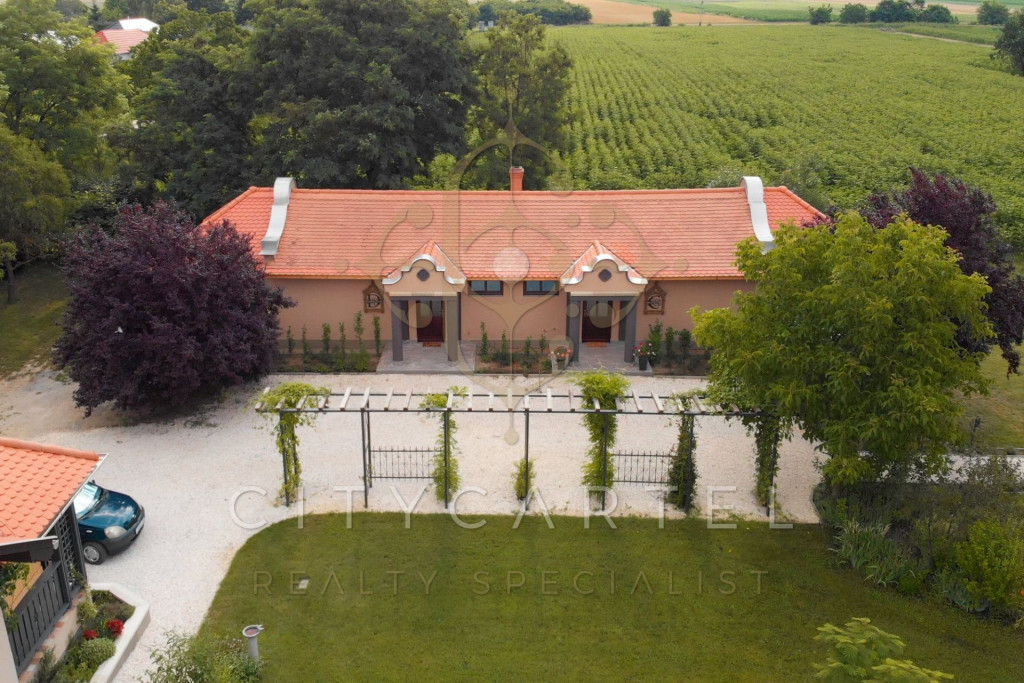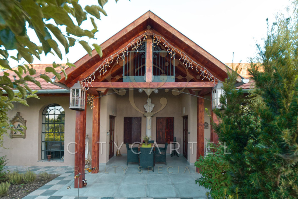Tiszaszentimrén, közel a Tisza-tóhoz, eladó egy 16 éve épült, paraszt barokk stílusú kúria, összesen 6 teljesen berendezett design apartmannal. Ez a birtok nem csupán különleges építészeti alkotás, hanem kiemelkedő befektetési lehetőség is: a jelenlegi üzemeltetés bizonyítja, hogy az apartmanok jó profittal kiadhatók (Booking, Airbnb).