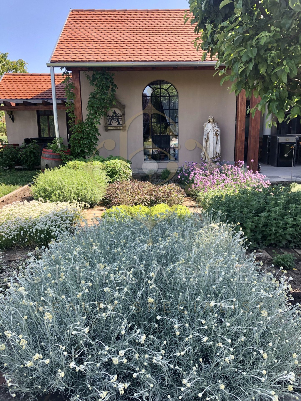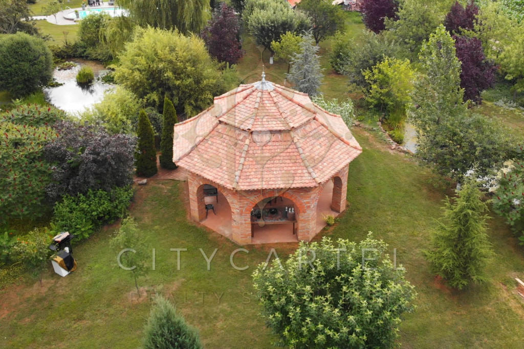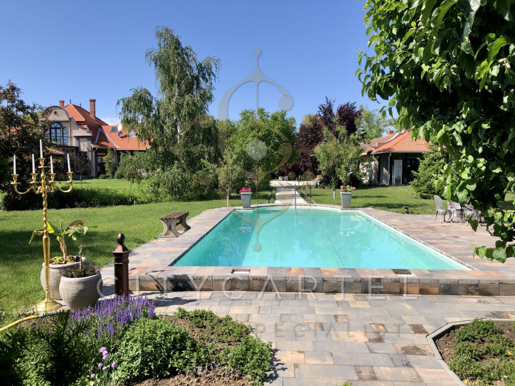 Parkosított birtok: 13.000 m² összesen (9000 m² park + 4000 m² szomszéd telek), kertitóval, gyümölcsfákkal, rózsakerttel, levendulával és díszfákkal