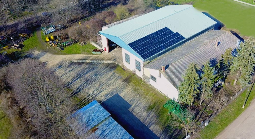 A főépület tetőszerkezetén napelemrendszer lett telepítve.