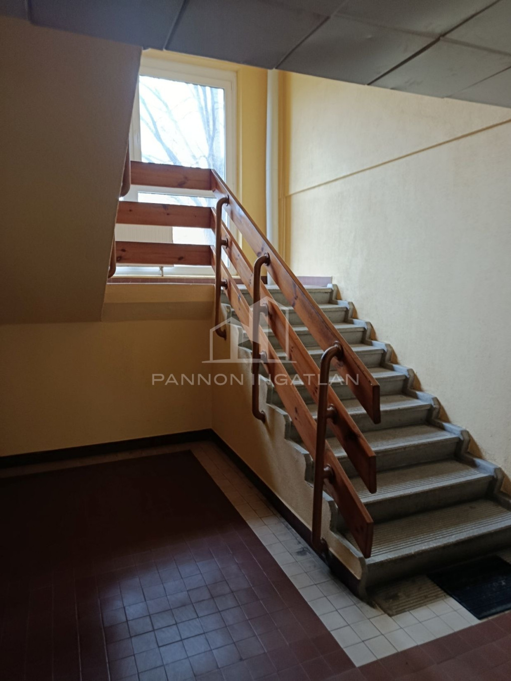 Az ingatlan egy négyemeletes, szigetelt társasház legfelső emeletén található, így világos, napfényes és csendes környezetet biztosít. A rendezett, tiszta lépcsőház nyugodt lakóközösséget tükröz.