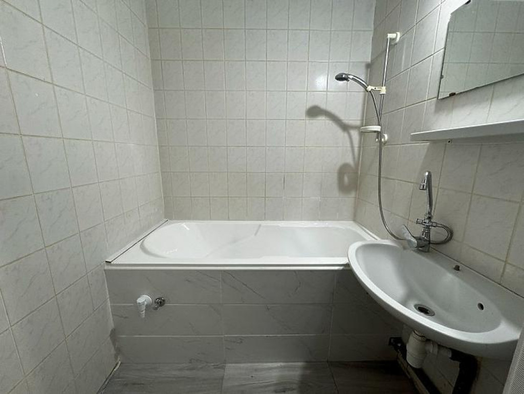 A fürdőszoba teljesen felfrissült: új akrilkád került beépítésre, és itt kapott helyet a mosógépkivezetése is.
