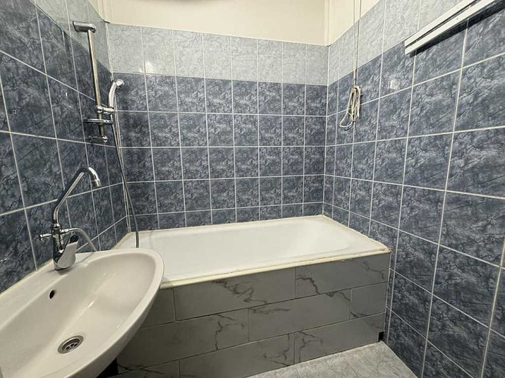 A szobákban és az előszobában laminált parketta található, a vizes helyiségek járólappal burkoltak, a szobák falai tapétázottak.