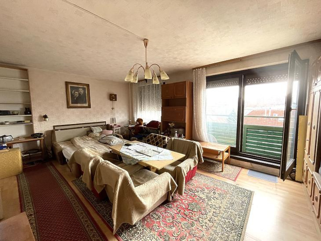 Káposztásmegyer I.-en, négyemeletes, cseréptetős társasház III. emeletén, 62nm-es, 2szobás lakás eladó, franciaerkéllyel.Az ingatlan felújítandó állapotú, így saját ízlés szerint kialakítható. A szobák laminált parkettásak, a többi helyiség linóleumos. A nyílászárók fa típusú thermo üvegesek, részben redőnyösek. A lakáshoz tartozik egy közös tároló is. Tehermentes!