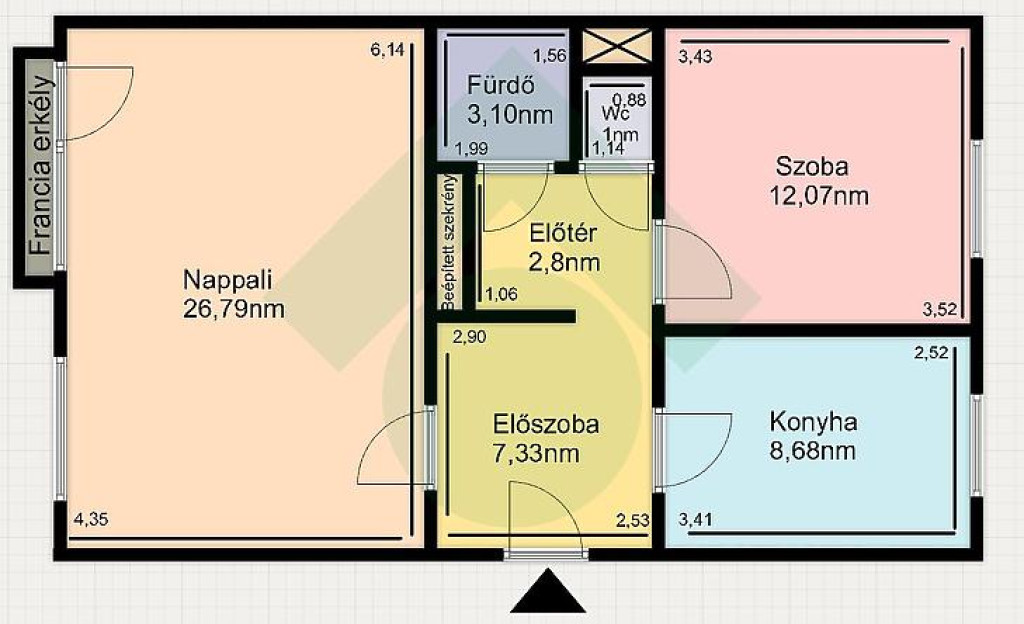 A bejárati ajtó több ponton záródó biztonsági. A beépített bútorzat a vételár részét képezik.