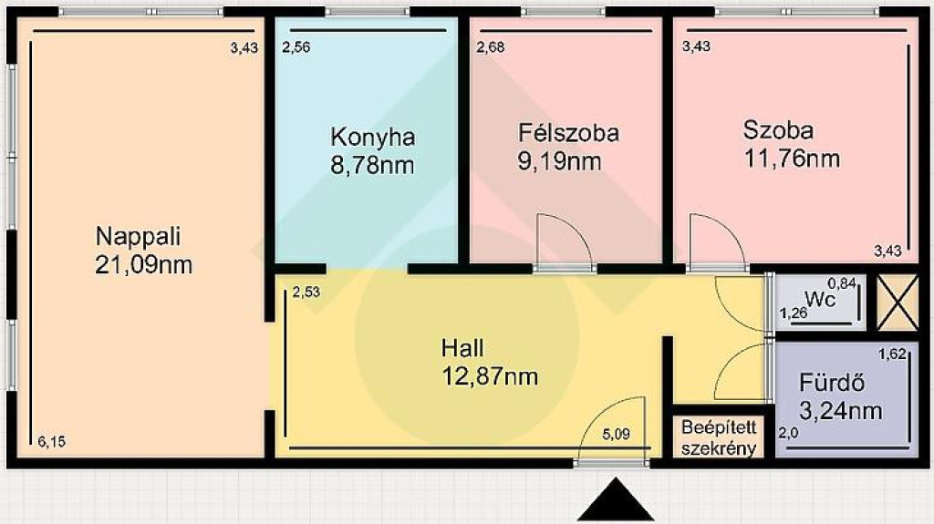 - Szobaszám 2 + 1 fél