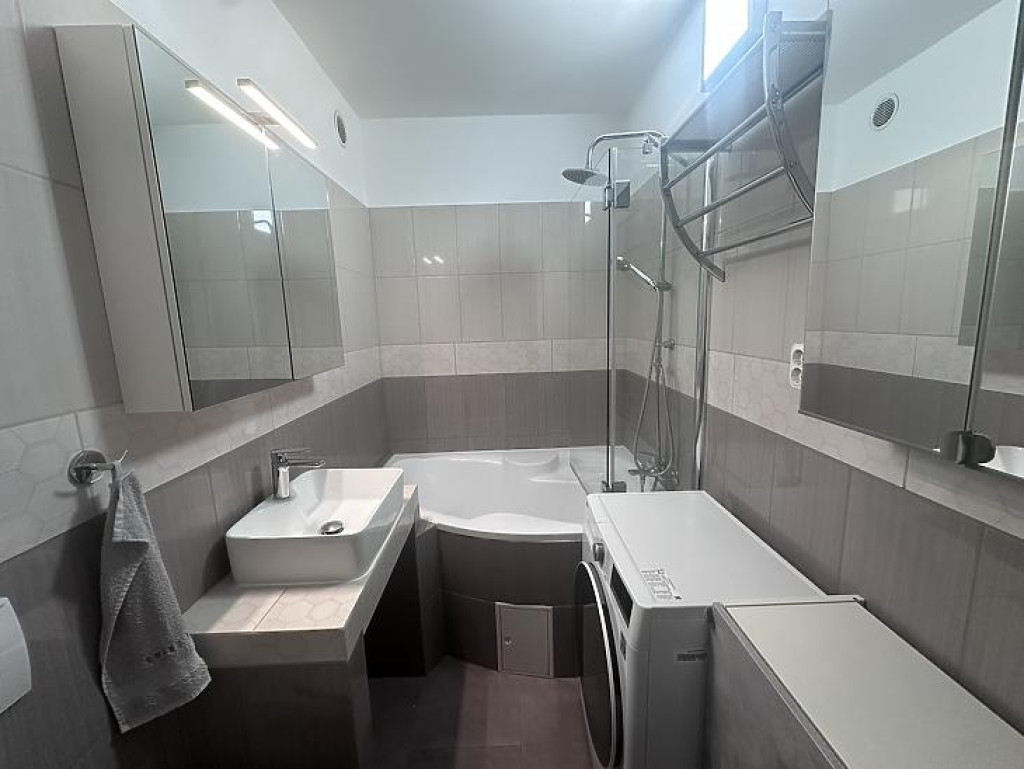 A lakásban megtörtént a teljes víz és villanyhálózat korszerűsítése. Több ponton záródó biztonsági bejárati ajtót, modern beltéri ajtókat, valamint redőnnyel felszerelt, thermo üveges, műanyag keretes nyílászárókat építettek be. A szobákban fa parkettát helyeztek le, a többi helyiséget járólappal burkolták. A fűtőtestek cseréje is megtörtént. Jelenlegi átalánydíj: 12.000.- Ft/hó. A nagyobb komfortérzet kialakításának érdekében a nappaliba felszerelésre került egy hűtő-fűtő inverteres légkondicionáló berendezés.
