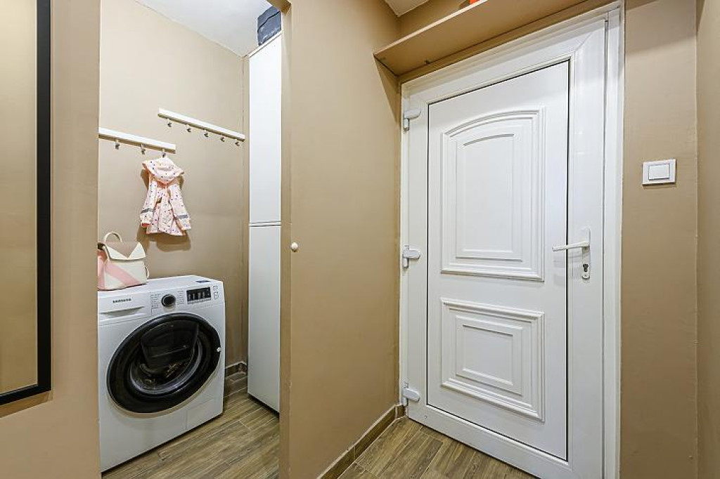 A lakásban a nyílászárók cserélve lettek, részben szúnyoghálóval ellátottak. A vezetékek cseréje is megtörtént. Az ingatlan minden helyisége különnyíló. Fűtése távfűtés egyedi méréssel. Közös költsége 16.875.-, rezsije kb. 30.000/hó.
