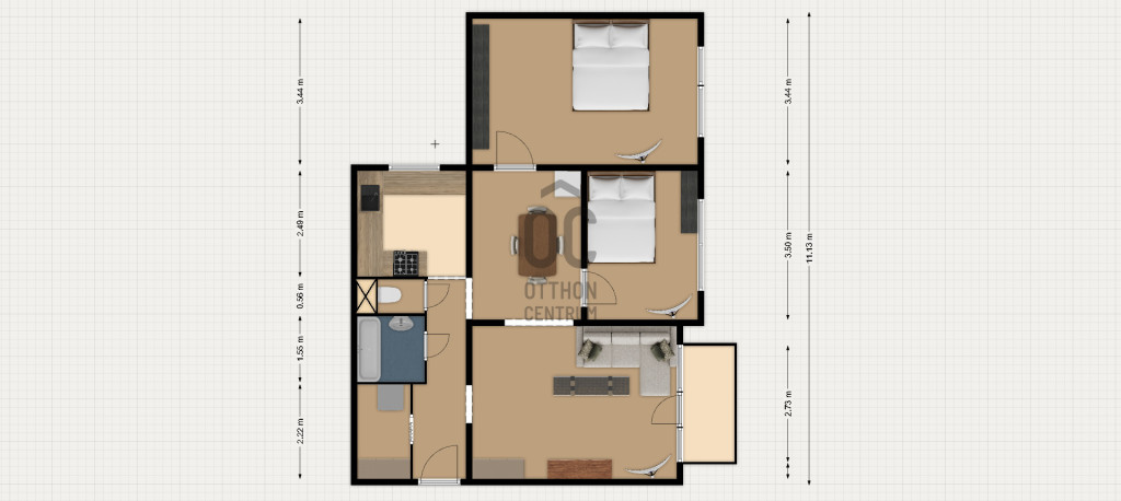 amely 2,5 szobával és külön étkezővel, ablakos konyhával kínál kényelmes életteret.