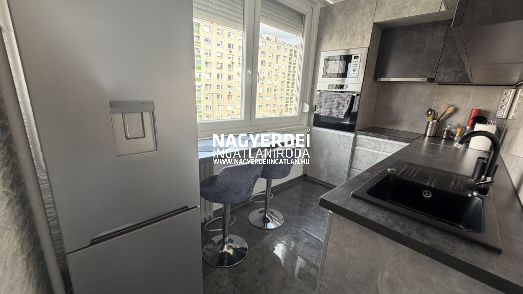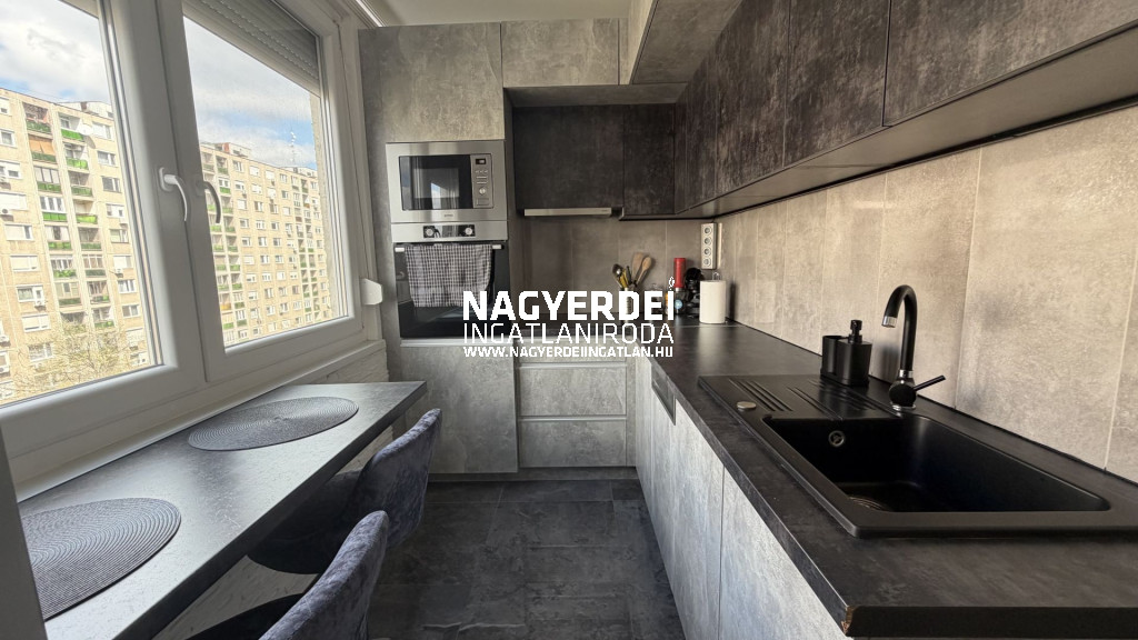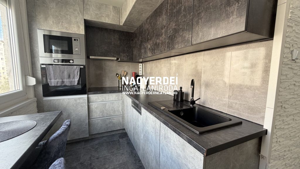 A konyha teljesen megújult, új, gépesített konyhabútorral felszerelt. A lakás rendkívül modern, ízlésesen kialakított, minden részletében igényes.