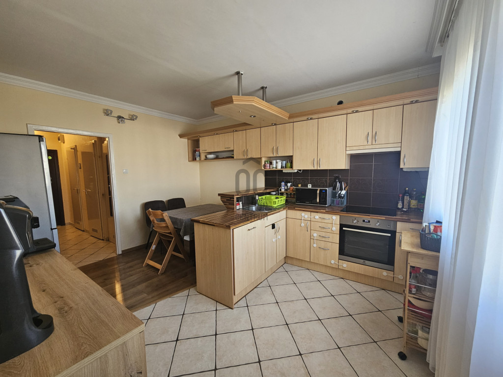 Az északi tájolású étkező-konyha jól használható, gépesített: elektromos sütő, kerámia főzőlap és mosogatógép is rendelkezésre áll. A keleti fekvésű nappali kellemes reggeli fényt kap.