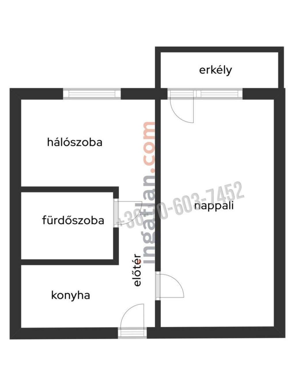A lakás praktikus kialakítású: nappaliból, hálószobából, konyhából, fürdőből és közlekedőből áll, a hálószoba átalakítás után akár a nappaliból is megközelíthető.