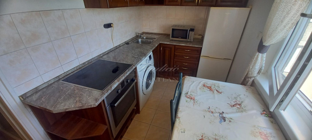 A távfűtéses ingatlan, jó minőségű konyhabútorral van szerelve, amelyben még a mosógép is helyet kapott.