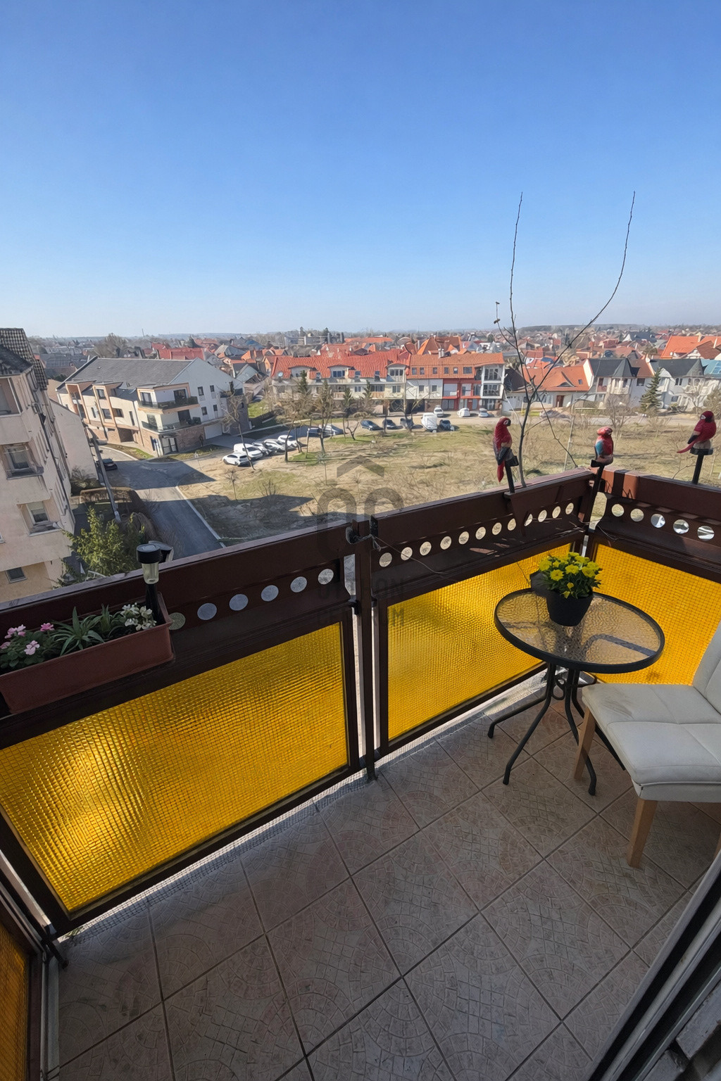 A lakás erkélye, amely 3 négyzetméteres, csodás panorámát kínál, ahol reggelente egy csésze kávé mellett élvezheted a napfelkeltét vagy esténként a naplementét nézheted.