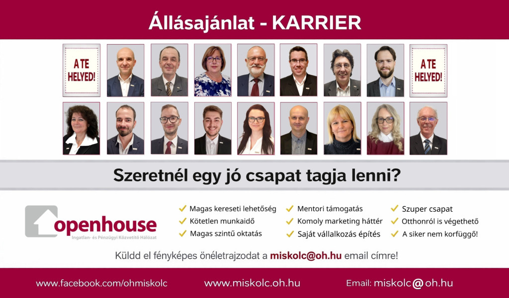 Az Openhouse Miskolc Szentpáli utcai Ingatlaniroda tagjaként várom Önt az országos hálózatunk teljes kínálatával.