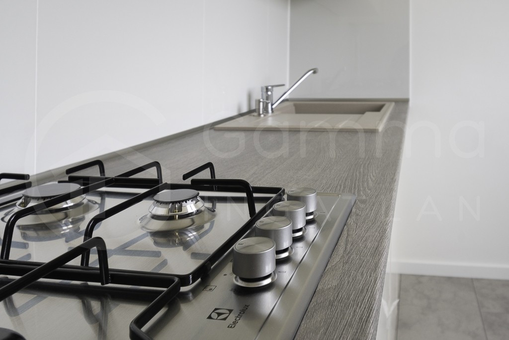 • Új konyhabútor, beépített gáz főzőlappal és elektromos sütővel. A mosogatógép csatlakozásai és a páraelszívó áramellátása kiépítve.