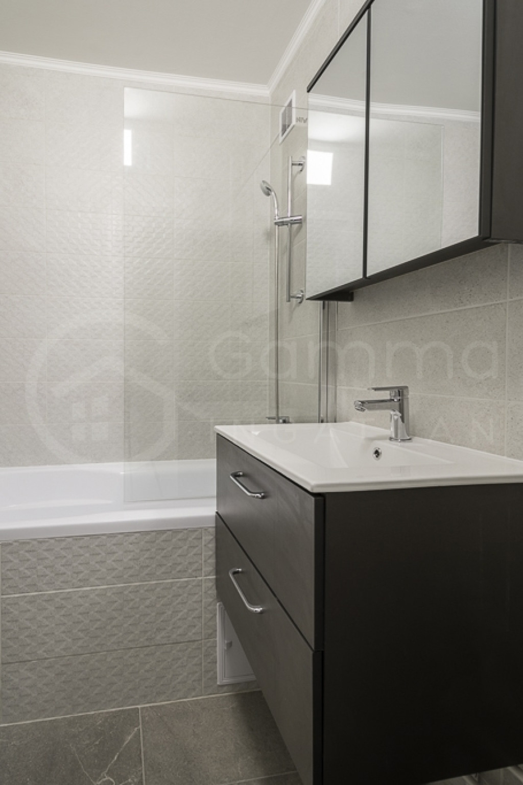 • VIZESBLOKKOK: A fürdőszoba és a WC betonig visszabontva épült újjá. A fürdőben csempe alatti vízszigetelés, a WC-ben falba süllyesztett tartályos rendszer készült.