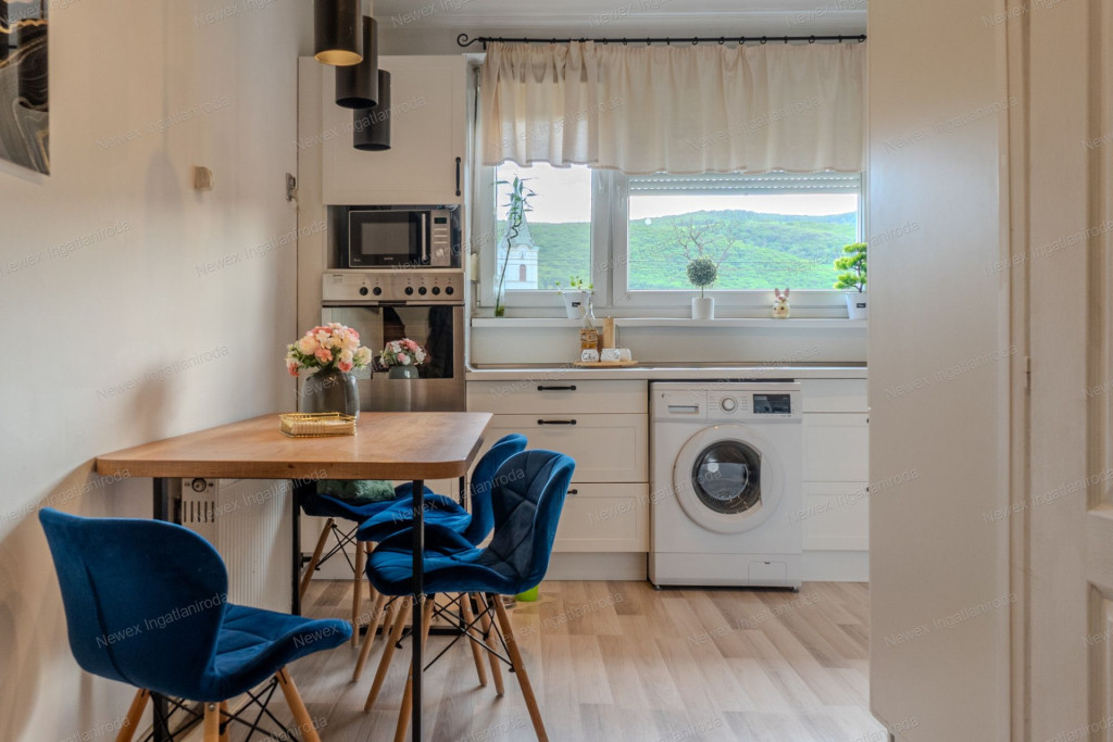 Az ingatlan világos, délnyugati tájolású, és különlegessége, hogy ablakai és a beépített loggia is a Bükk hegységre néznek, így minden nap nyugodt, zöld panorámában gyönyörködhet.