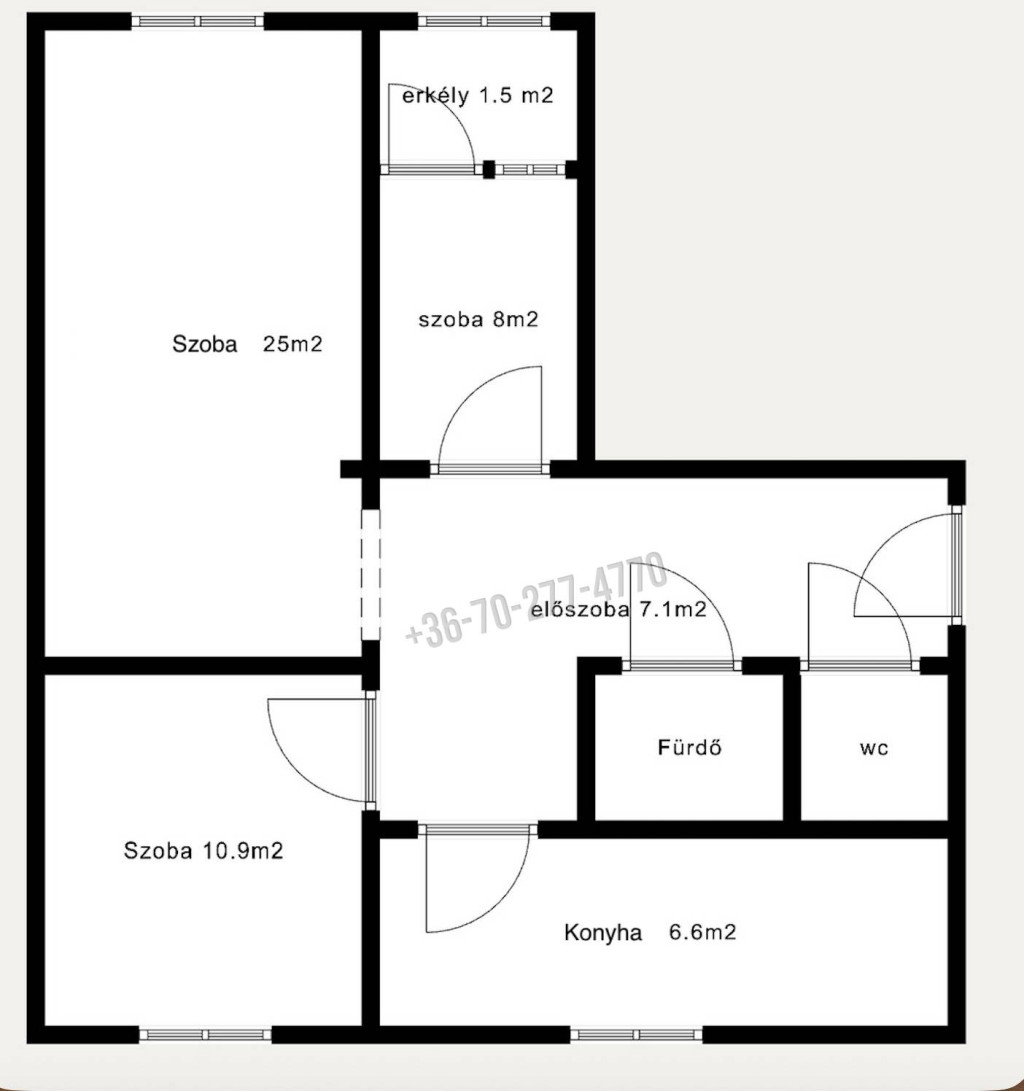 - Szobaszám 2 + 1 fél