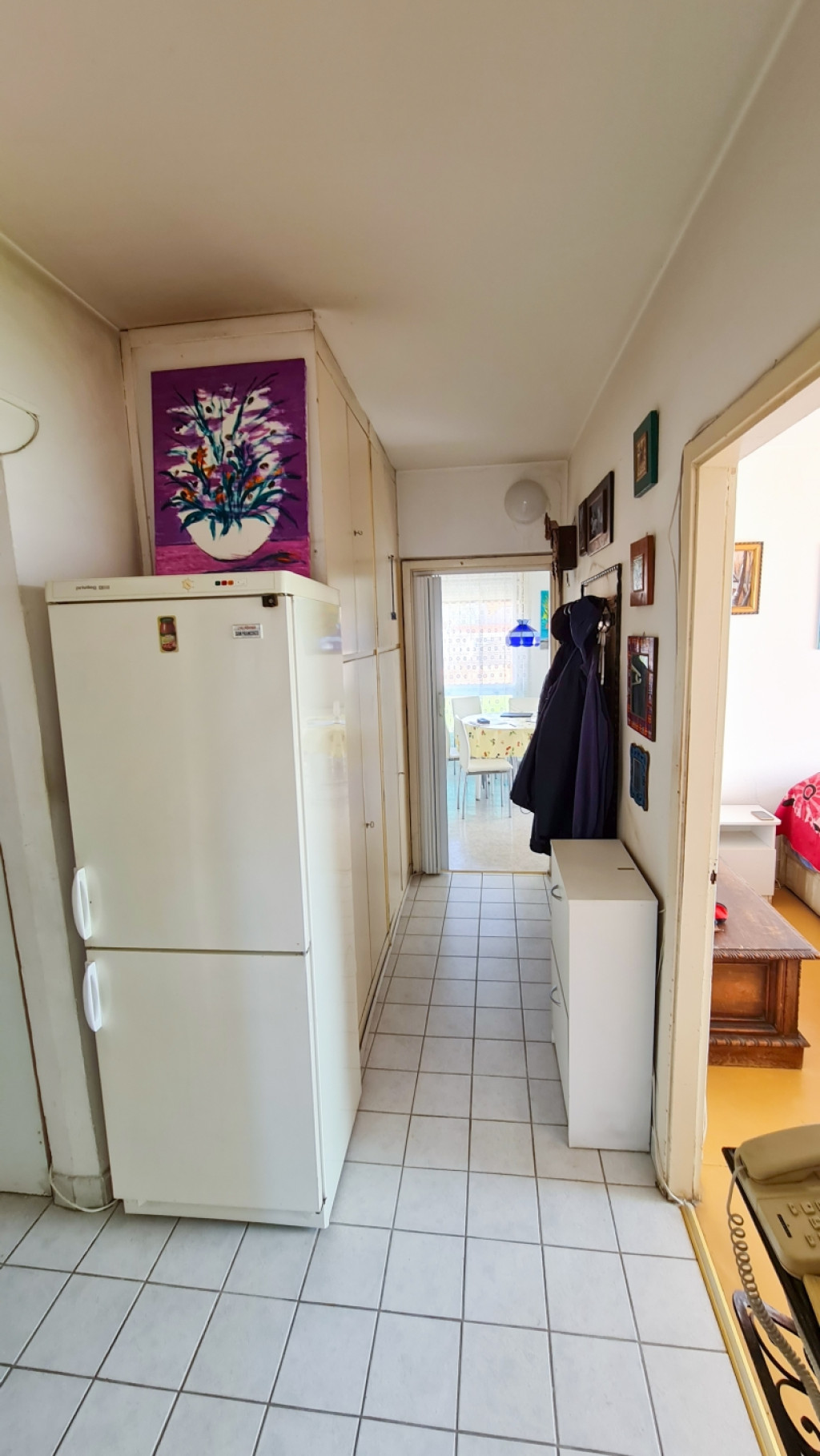 Az eredeti erkélyt beépítették, így a nappalin kívül három külön szoba áll rendelkezésre,