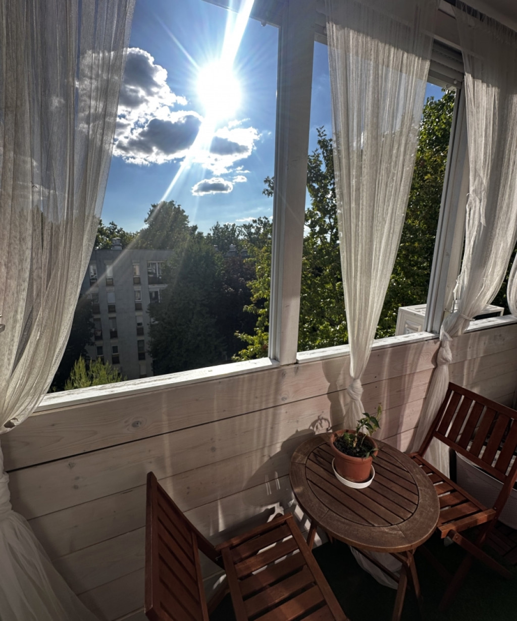 Nappaliból kilépve a gyönyörű erkélyre érkezük ahol jól esik a délutáni kávé egy fáradt nap után.