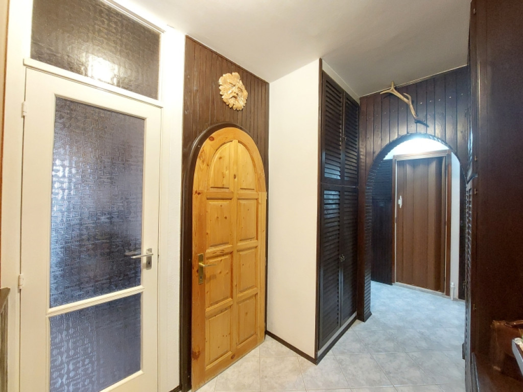 A belső kialakítás otthonos és egyedi: a bejárati ajtó fa burkolatú, a nyílászárók műanyagok, redőnnyel és szúnyoghálóval felszerelve.
