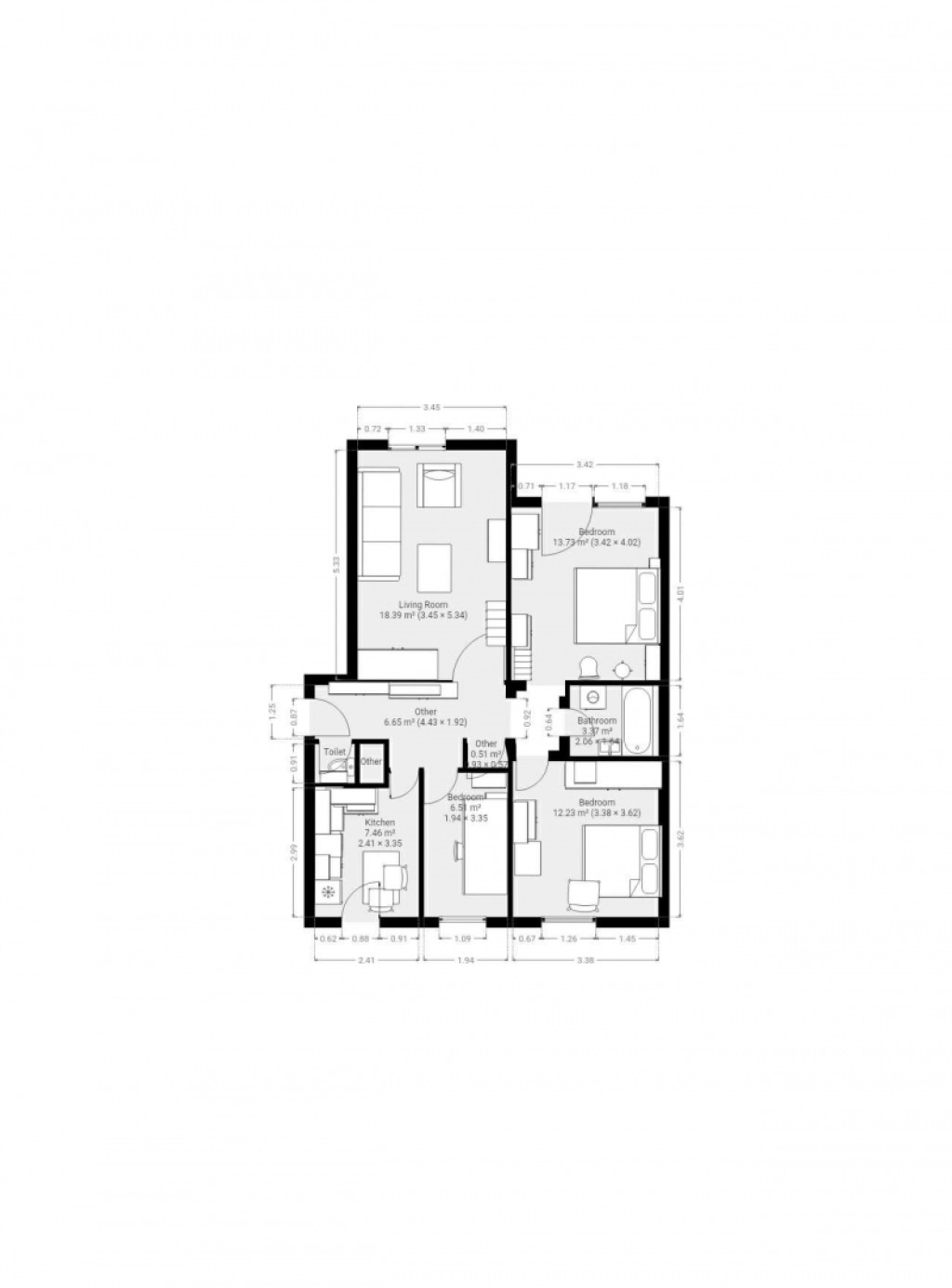 Az egyik szobából egy 3m2-es erkély nyílik, így kellemes kiegészítője lehet a lakásnak.