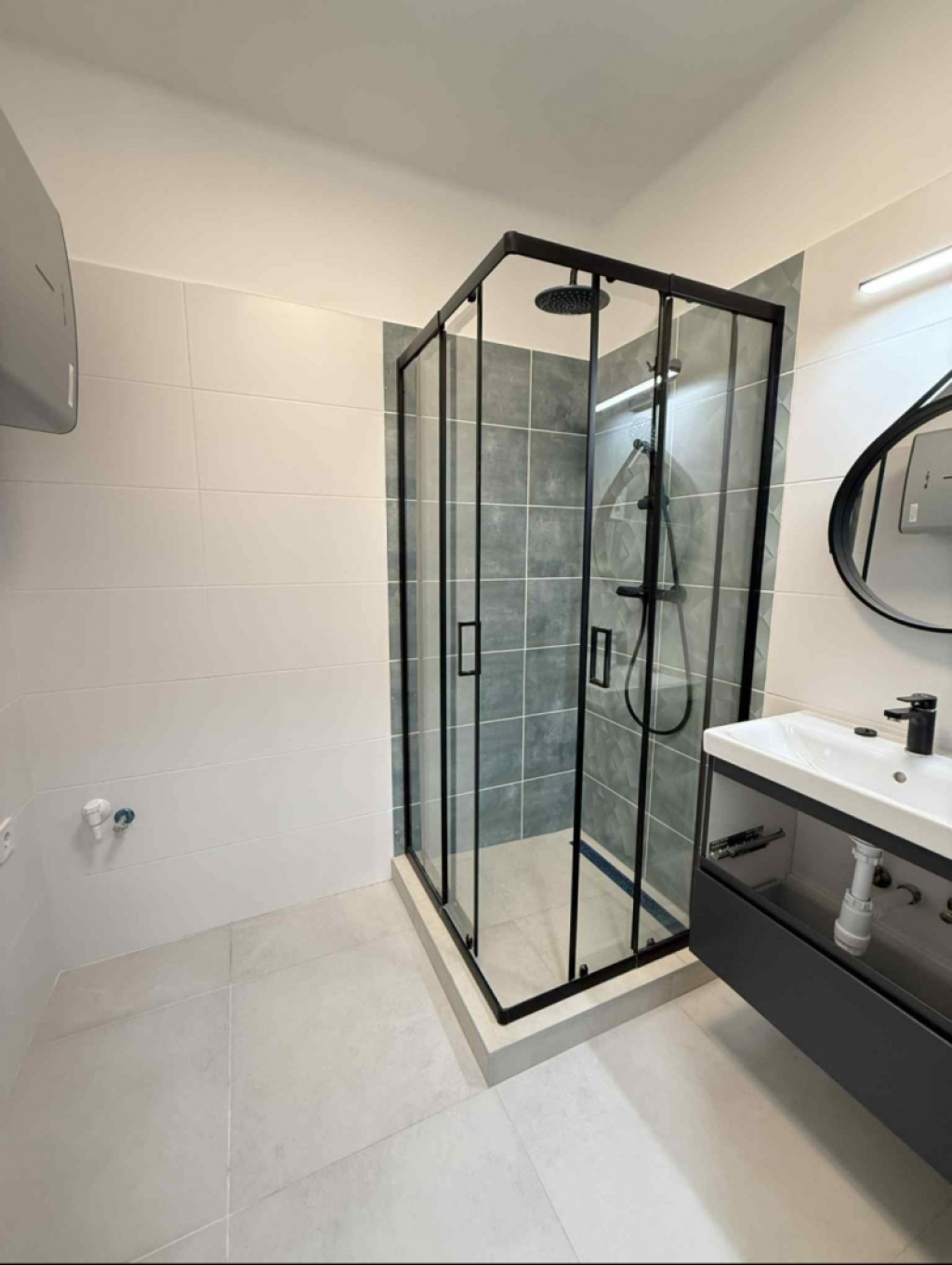Szobái kiváló minőségű vízálló parkettával, a fürdőszoba minőségi kerámia lappal burkolt.