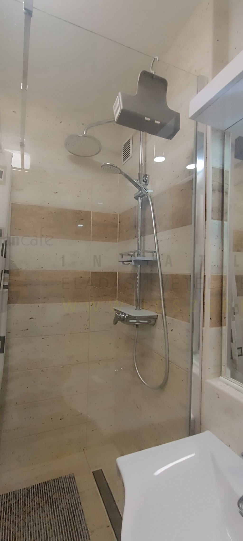 - a fürdőben épített üvegfalas tusolót építenek be vadonatúj szaniterekkel,