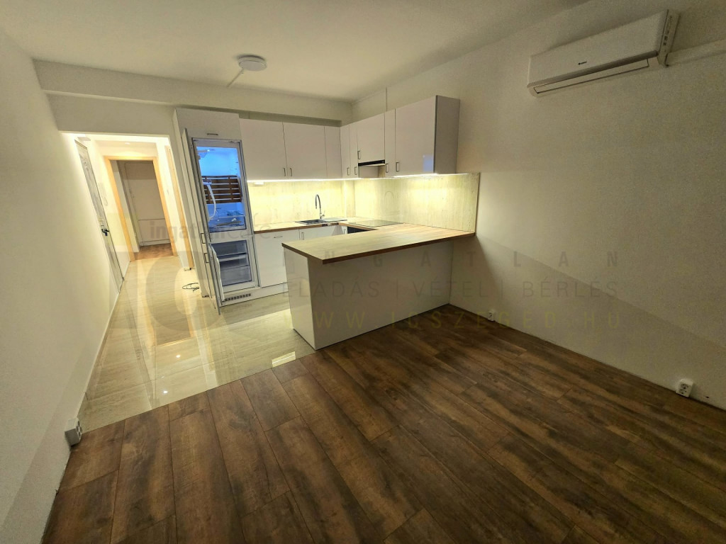 Szeged, Felsővároson, csendes utcában, pár perc sétára a Tisza parttól, eladó egy teljesen felújított és átépített, 64 m2-es, amerikai konyhás nappali+3 szobás, erkélyes lakás.Jelen fotók referenciafotók, egy már előzőleg elkészült és átadott lakásról készültek, irányadó ahhoz, hogy ezen lakás is hasonló módon kerül felújításra mely néhány héten belül teljesen elkészül.