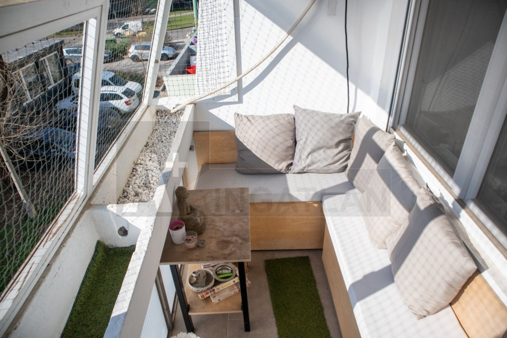 - Erkélyes: az erkély karbantartott, előtetővel és macskahálóval ellátott.