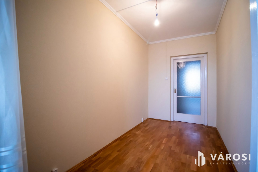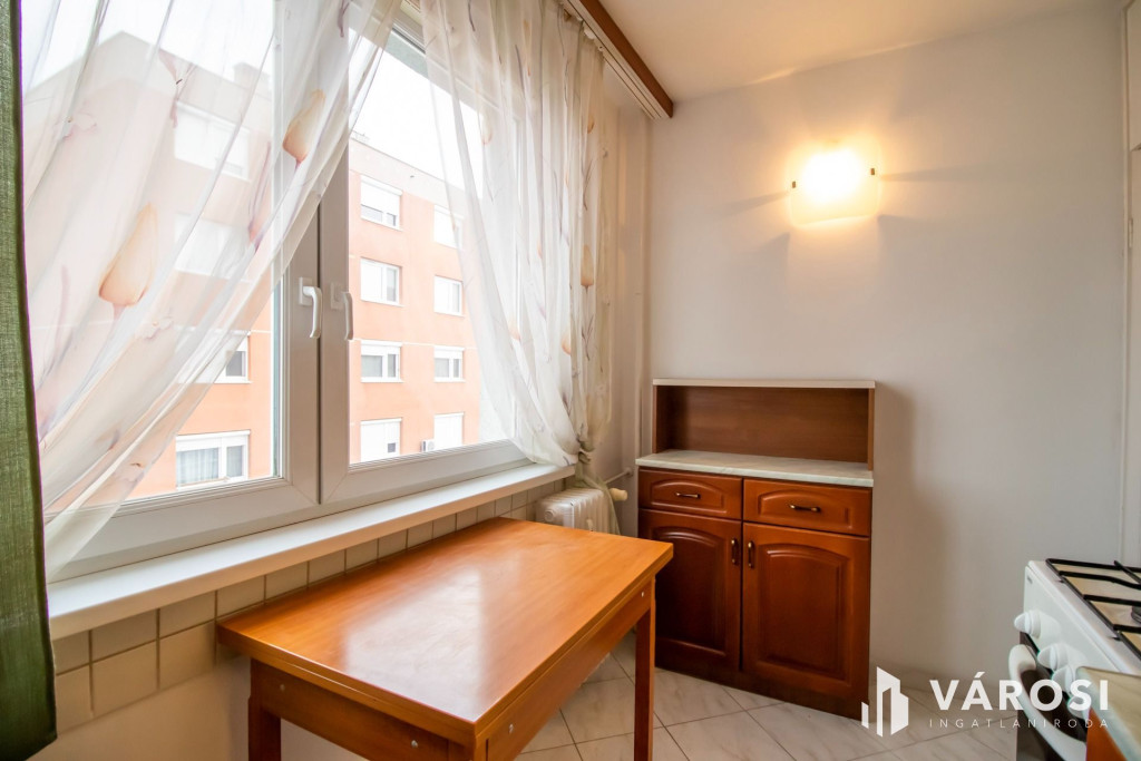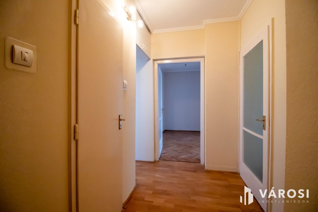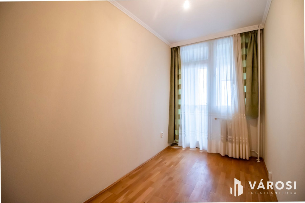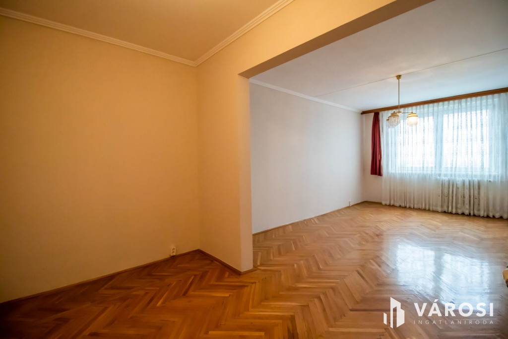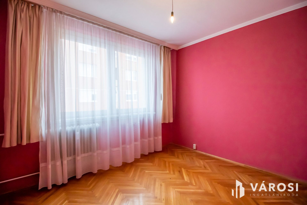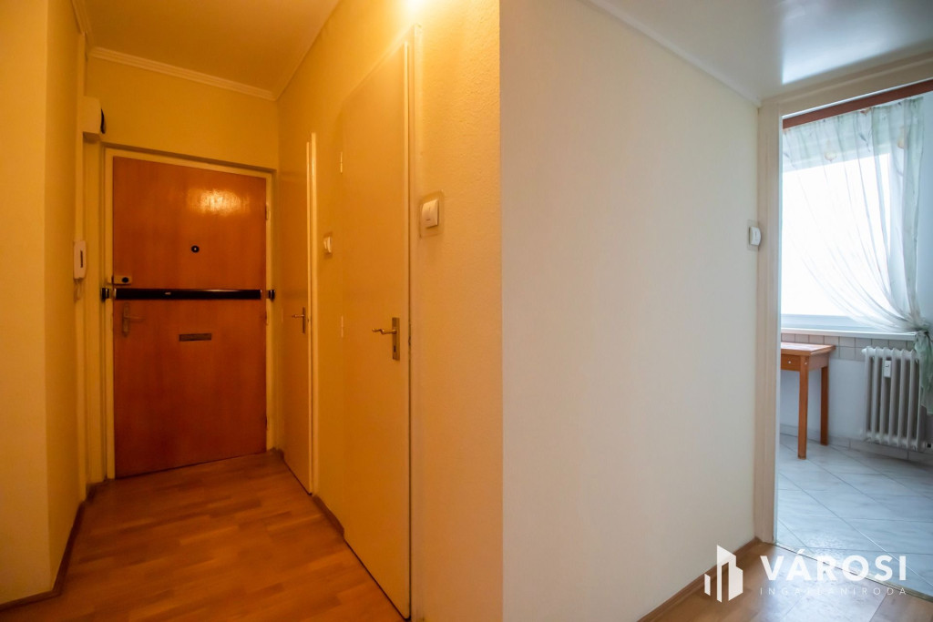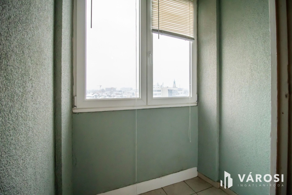 Ez az 7. emeleti, liftes házban levő, nappali + 2 szobás panellakás, a történelmi belvárostól 200 méterre helyezkedik el. A nappali és a beépített erkély a kisszobával délután közepéig fürdik a napfényben. A harmadik szoba és a konyha pedig egy csendes parkolóra néz. A három szoba mindenkinek biztosítja a külön birodalom lehetőségét.Az épület már korszerű külsőt és hőszigetelést kapott a panelprogram keretein belül. A nyílászárók is újakra lettek cserélve. A fűtés távhővel történik, ami radiátorokon keresztül adja le a meleget. Ezeknek köszönhetően a fűtésköltség kedvező, miközben kellemes meleg van a szobákban.