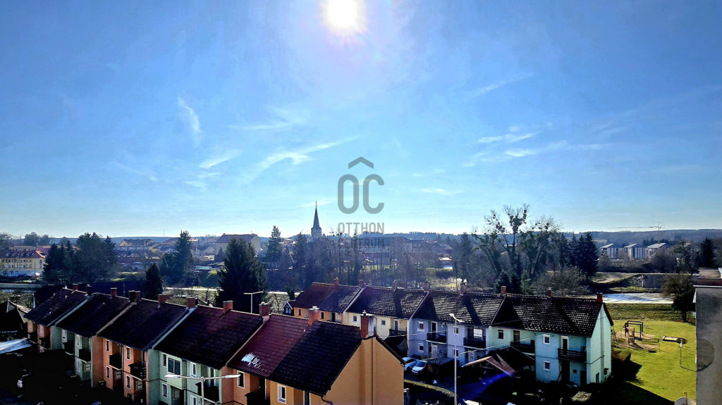 Az osztrák határ melletti városban eladó egy 57 m²-es, 2 szobás lakás a 4. emeleten.A lakás legnagyobb előnye a panoráma: az ablakból a Rába folyó és a város látképe látható.