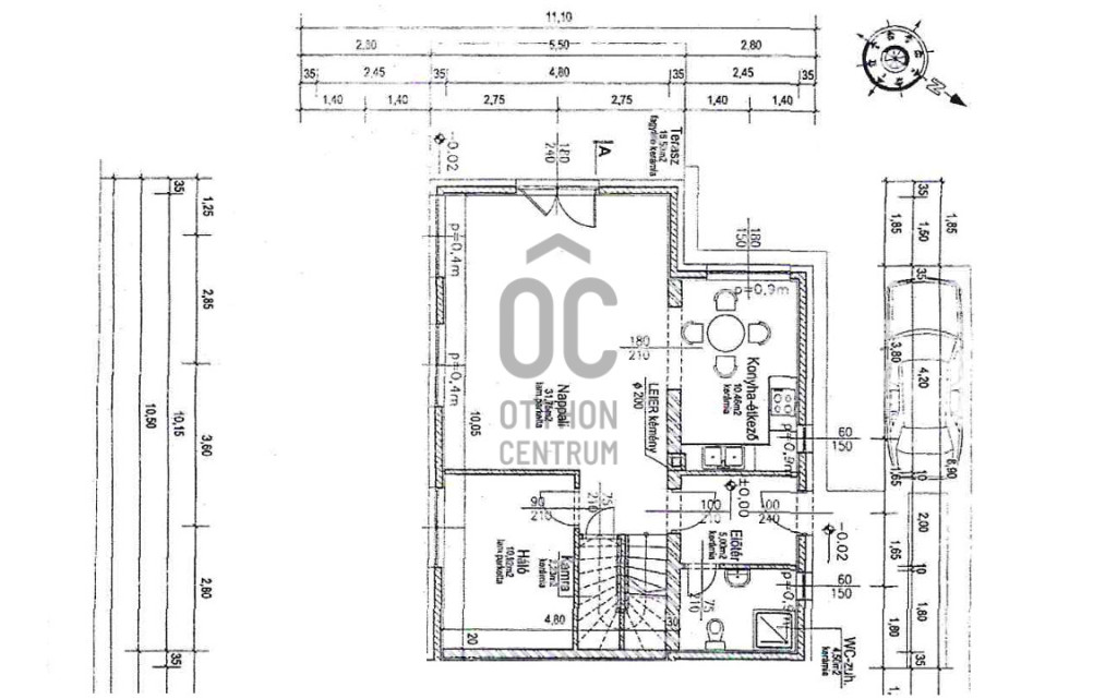 zárt sorú beépítésben épült szélső elhelyezkedésű, belső két szintes, 165,5 nm hasznos alapterületű,