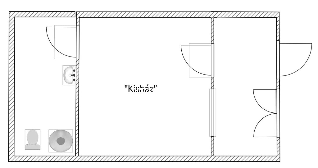 Helyiségek: Fürdőszoba (WC, kézmosó, bojler), egyik helyiségben gáztűzhely, a többi helyiség rugalmasan alakítható.