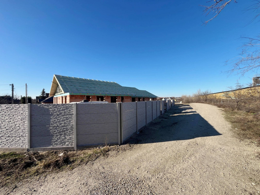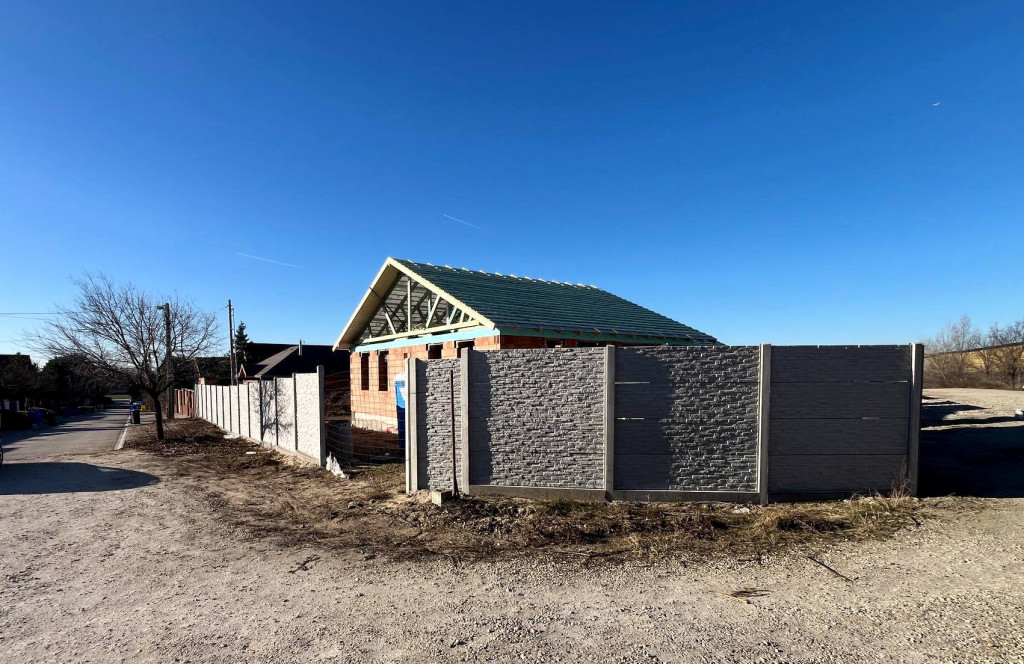 •Telekrészek elválasztása: drótfonatos kerítés, egy sor zsalukő alappal és oszlopokkal
